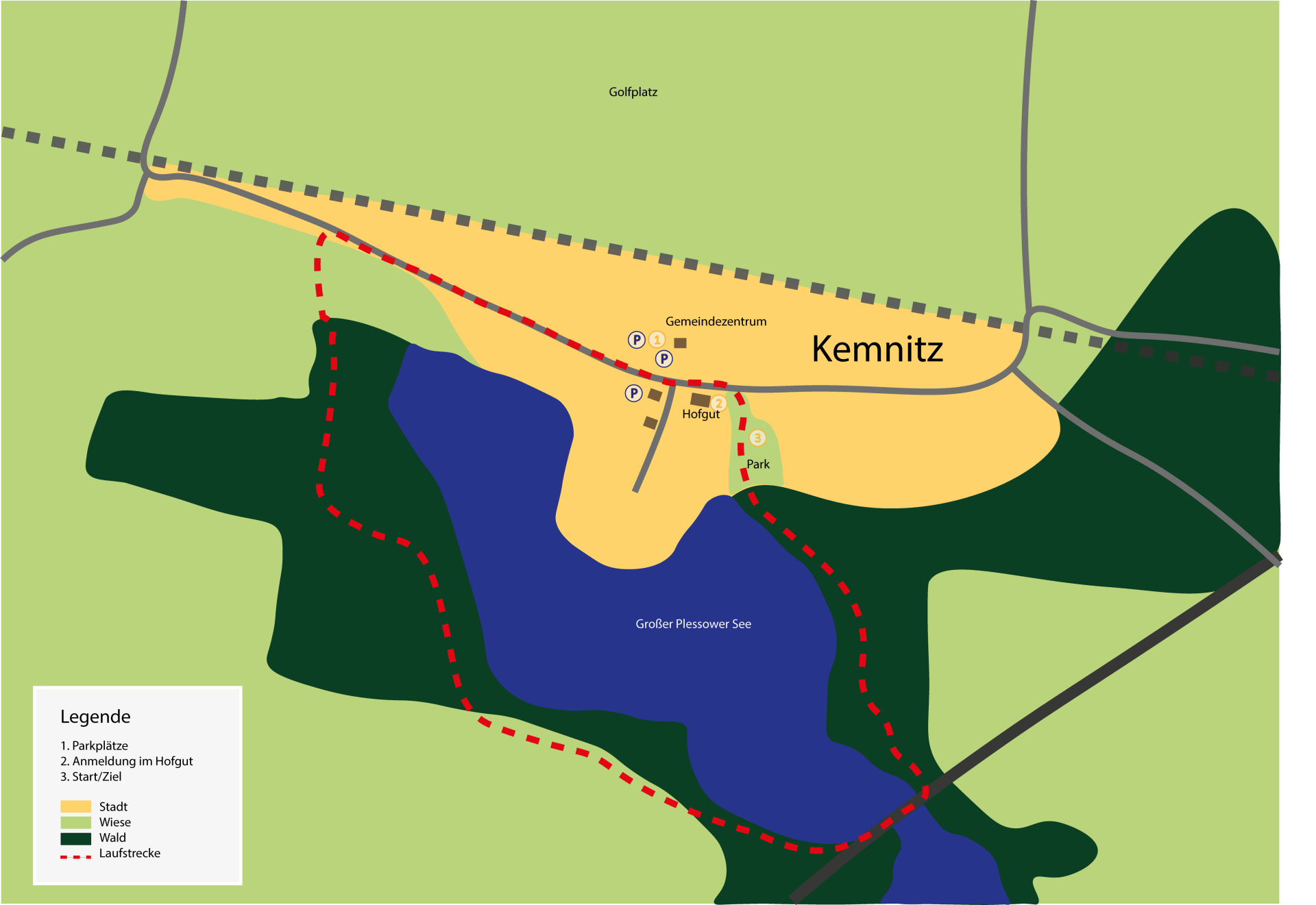 Nur wenige Kilometer von Otto Lilienthals ersten Flugversuchen entfernt treffen wir uns im Rittmeisters Hofgut und beginnen mit der Startnummervergabe. Um 14 Uhr fällt dann der Startschuss im benachbarten Park und du beginnst deinen Lauf durch das kleine Örtchen Kemnitz. Schon bald verlässt du die asphaltierte Straße und begibst dich in die Wald- und Seenlandschaft des Havellands. Nach knapp 3 Kilometern hast du den Kemnitzer Teil des Plessower Sees umrundet und bist wieder im Park. Du hast die erste von drei Runden geschafft …